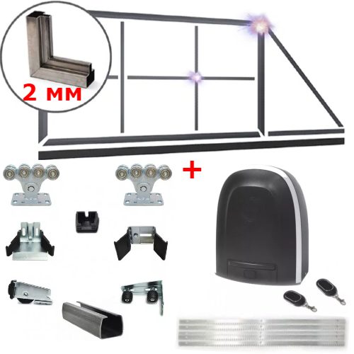Комплект фурнитуры с идеальным по качеству направляющим профилем и усиленными подшипниками. А автоматика Alutech RTO 500 уже давно зарекомендовала себя на рынке России.