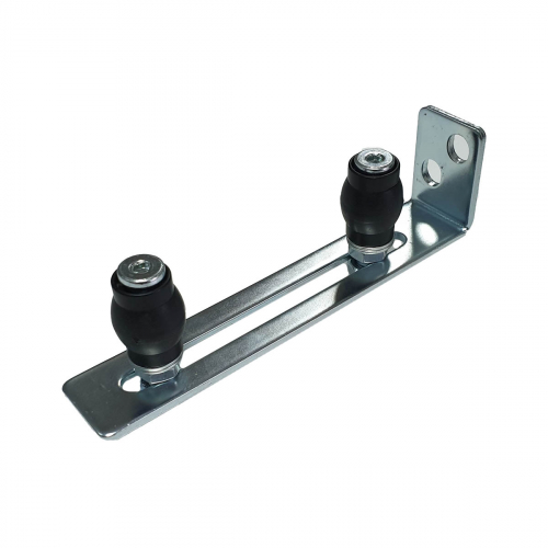 Верхние поддерживающие ролики для распашных автоматических ворот крепятся на стальной пластине с прорезями. Материал втулки - черный капролон. Не резина, как у других производителей. Толщина пластины 3 мм. Похвально, выше, чем у Девы.